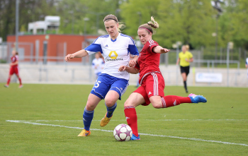 16.04.2017 xcex Deutschland, Frankfurt, Fussball, Frauenfussball 2. Frauen Bundesliga S?d Saison 2016/2017 1. FFC Frankfurt II gegen TSV Schott Mainz Samantha Herrmann (Mainz) gegen Lisa Ebert (Frankfurt) ***** Foto: A2/Hartenfelser
