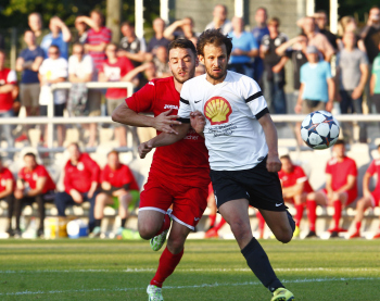 110615_11062015 Fussball regional - Saison 2014 / 15 - Relegation Rotweiss Frankfurt - Kelsterbach / re 6 Robert Brueck Kelsterbach li 18 Mert Pekesen Rotweis ********* Foto: Hartenfelser