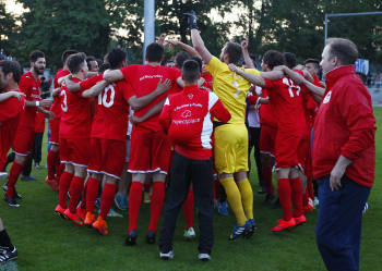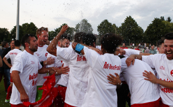 110615_11062015 Fussball regional - Saison 2014 / 15 - Relegation Rotweiss Frankfurt - Kelsterbach / Jubel bei der Mannschaft Rot weiss ist in die Hessenliga aufgestiegen ********* Foto: Hartenfelser