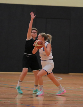 Melissa Gieler (13, BCNI), Céline Jünger (11, BCNI) gegen Corinna Werkmann (11, Rüsselsheim)
