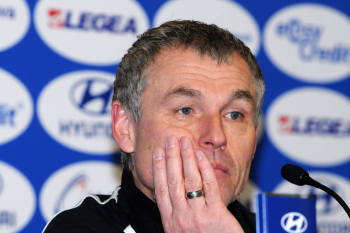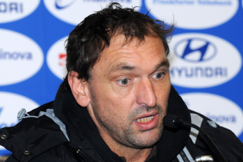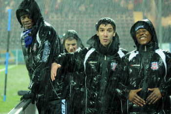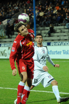 26.02.2010, 2. Bundesliga, 24. Spieltag:, FSV Frankfurt - Energie Cottbus, John Adam Straith (Cottbus) vs J?rgen Gjasula (Cottbus)