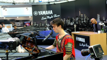12.04.2018 xkhx Frankfurt am Main, Messe Musikmesse 2018 Yamaha Music Europe präsentiert den zweifachen Grammy-Gewinner, Multi-Instrumentalist, Komponist und Produzent Jacob Collier *** Foto: Peter Hartenfelser