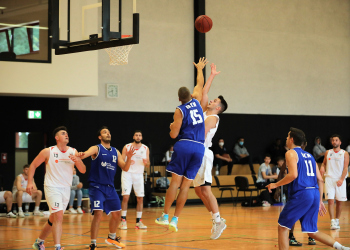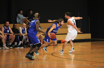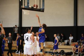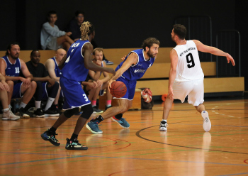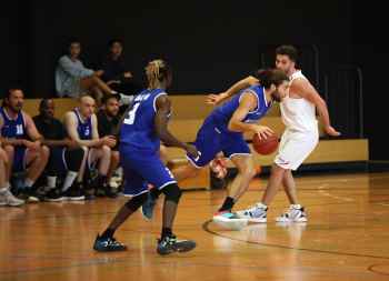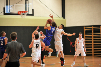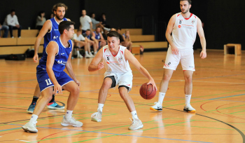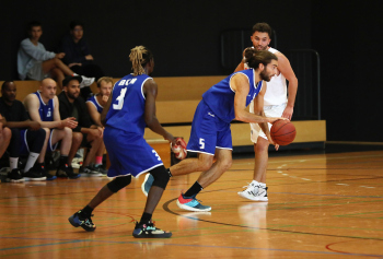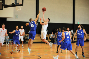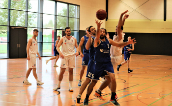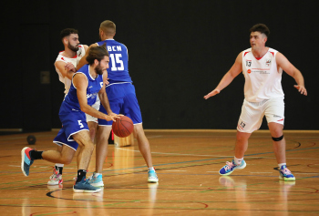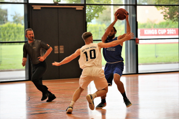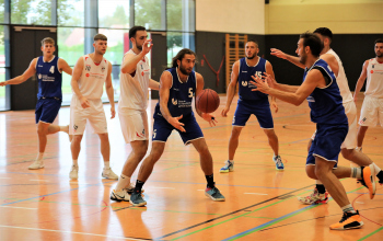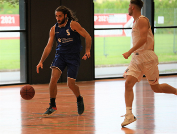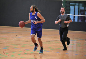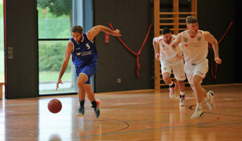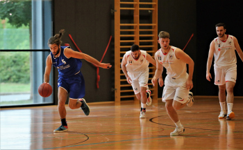 Daniel Hack (5, BC Neu-Isenburg) und Luka Nicin (11, BC Neu-Isenburg) gegen Orkun Mehmed (5, Gießen) und Onur Mehmed (8, Gießen)