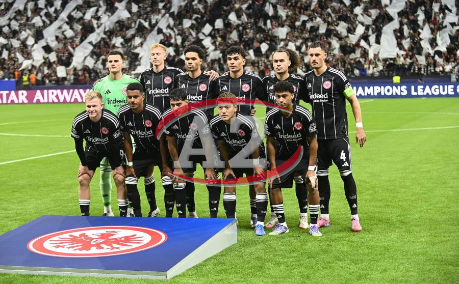 Mannschaftsfoto Eintracht Frankfurt hinten: Torwart Michael Zetterer (Eintracht Frankfurt, 23), Hugo Larsson (Eintracht Frankfurt, 16), Nnamdi Collins (Eintracht Frankfurt, 34), Can Uzun (Eintracht Frankfurt, 42), Arthur Theate (Eintracht Frankfurt, 03), Robin Koch (Eintracht Frankfurt, 04) vorn: Jonathan Burkhardt (Eintracht Frankfurt, 09), Ansgar Knauff (Eintracht Frankfurt, 07), Fares Chaibi (Eintracht Frankfurt, 08), Ritsu Doan (Eintracht Frankfurt, 20), Nathaniel Brown (Eintracht Frankfurt, 21) - Frankfurt 18.09.2025: Eintracht Frankfurt vs. Galatasaray Istanbul, Deutsche Bank Park, 1. Spieltag UEFA Champions League *** Team photo Eintracht Frankfurt back Goalkeeper Michael Zetterer Eintracht Frankfurt, 23 , Hugo Larsson Eintracht Frankfurt, 16 , Nnamdi Collins Eintracht Frankfurt, 34 , Can Uzun Eintracht Frankfurt, 42 , Arthur Theate Eintracht Frankfurt, 03 , Robin Koch Eintracht Frankfurt, 04 Jonathan Burkhardt Eintracht Frankfurt, 09 , Ansgar Knauff Eintracht Frankfurt, 07 , Fares Chaibi Eintracht Frankfurt, 08 , Ritsu Doan Eintracht Frankfurt, 20 , Nathaniel Brown Eintracht Frankfurt, 21 Frankfurt