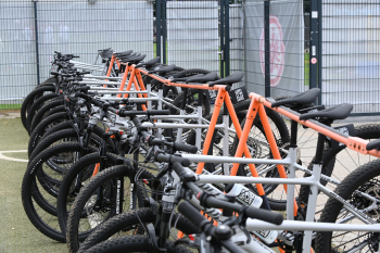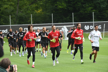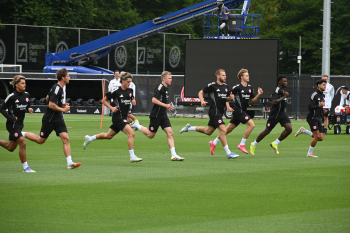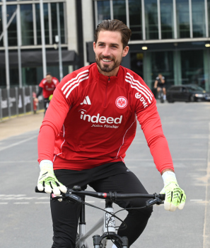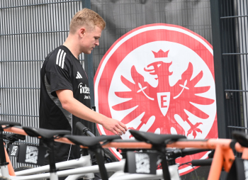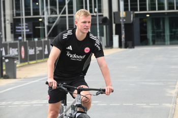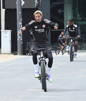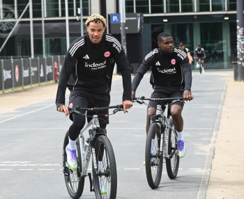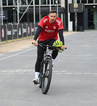 Eintracht Frankfurt Trainingsankunft mit dem Fahrrad