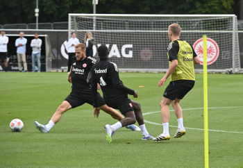 Hugo Ekitike (11, Eintracht Frankfurt), Mahmoud Dahoud (18, Eintracht Frankfurt) und Timothy Chandler (22, Eintracht Frankfurt)