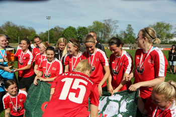 22.4.2019 Neu-Isenburg, Sportpark Frauen Kreispokalfinale FC Neu-Isenburg - FSG Rodgau/Zellhausen - Pokal-Sieger nach Vesna Taceva (FC Neu-Isenburg) *** Foto:Peter Hartenfelser ****** Foto: Peter Hartenfelser