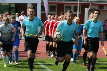 22.4.2019 Neu-Isenburg, Sportpark Frauen Kreispokalfinale FC Neu-Isenburg - FSG Rodgau/Zellhausen - Schiedsrichter Jannik Schubert (Neu-Isenburg), Assitenten Markus Ogrizek und Stefan Vaskov *** Foto:Peter Hartenfelser ****** Foto: Peter Hartenfelser