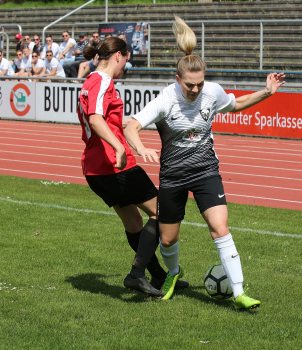 22.4.2019 Neu-Isenburg, Sportpark Frauen Kreispokalfinale FC Neu-Isenburg - FSG Rodgau/Zellhausen Maren Bambach (FC Neu-Isenburg) gegen Antonia Polland (Rodgau/Zellhausen ) *** Foto:Peter Hartenfelser ****** Foto: Peter Hartenfelser