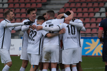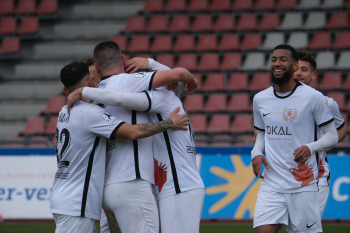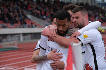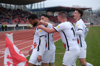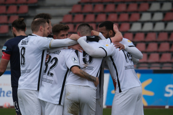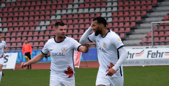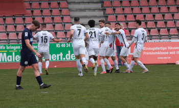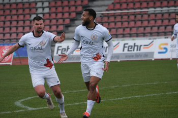 Torjubel nach dem Tor zum 1:0 durch den Torschützen Nasuhi-Noah Jones (30, Hessen Kassel) hier mit Steven Rakk (15, KSV Hessen Kassel) links