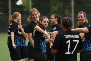 21.07.2018 Neu.Isenburg, Buchenbusch Freundschaftspiel Damen, Frauen TSG Neu-Isenburg -1.FC Mittelbuchen Sabrina Frank (TSG Neu-Isenburg ), Sanije Bunjaki und Jana Tampe ((TSG Neu-Isenburg ) ****** Foto: Peter Hartenfelser