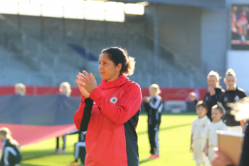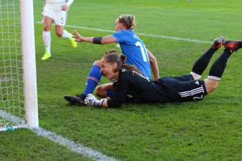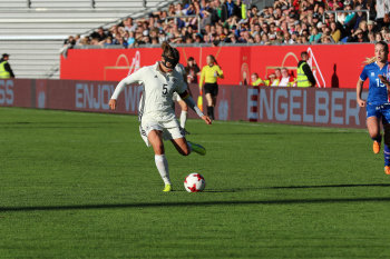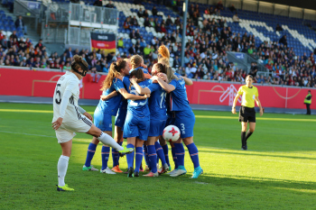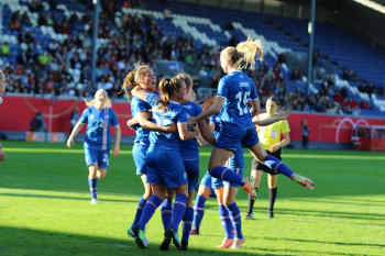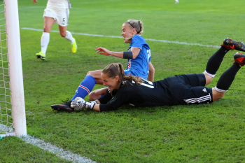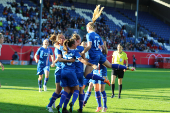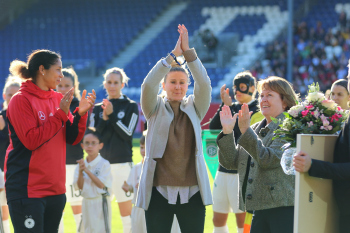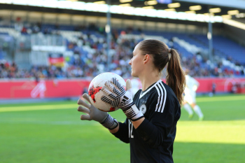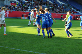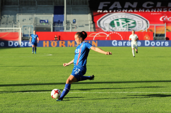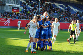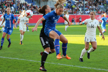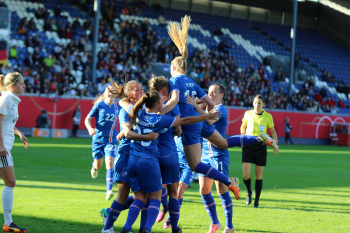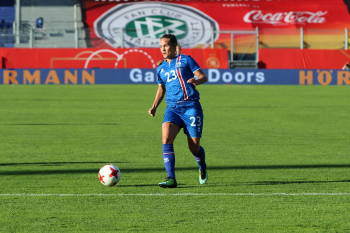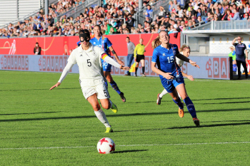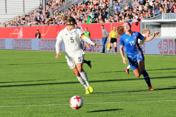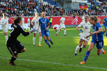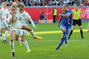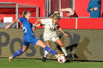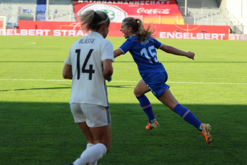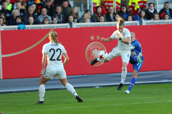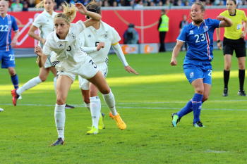 links Hasret Kayikci (23, GER) und Babett Peter (5, GER), rechts Fanndis Fridriksdottir (23, Island)