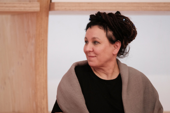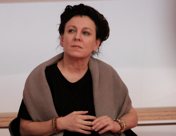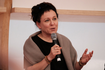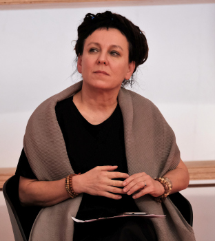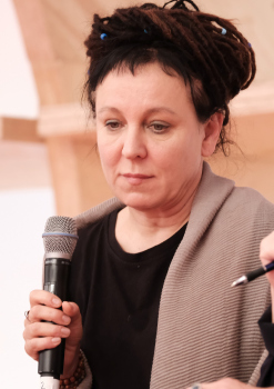 Olga Nawoja Tokarczuk ist eine polnische Psychologin und Schriftstellerin, sie erhilet rückwirkend den Nobelpreis für Literatur für 2018 hier mit Ihrer Übersetzerin