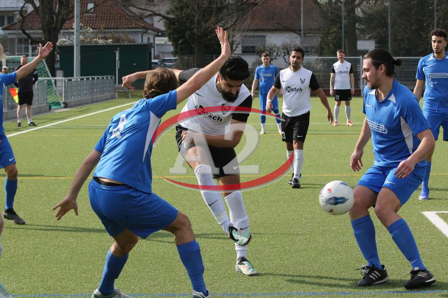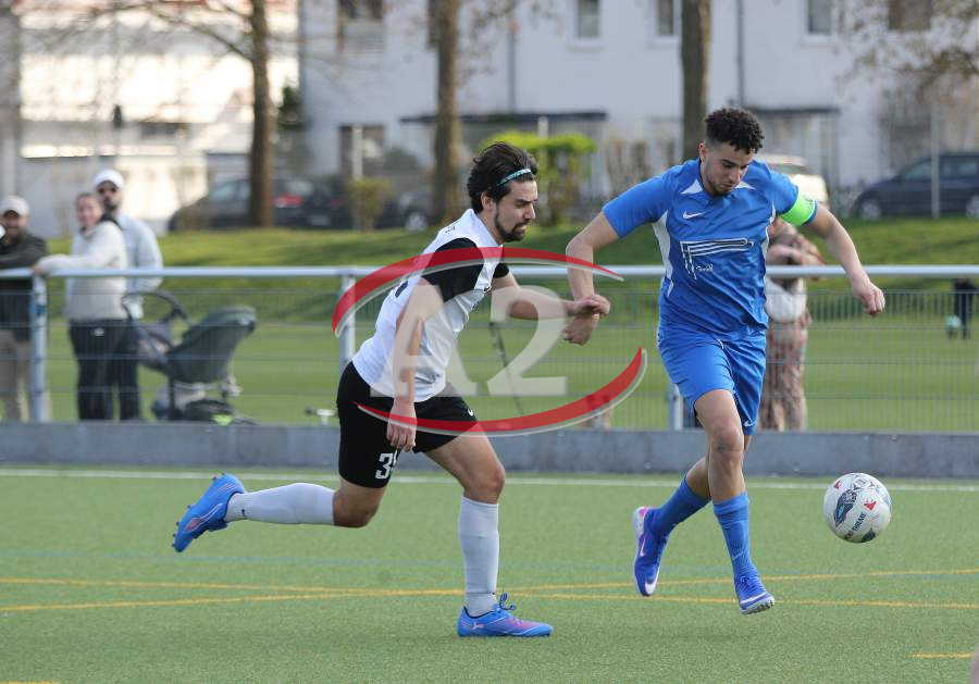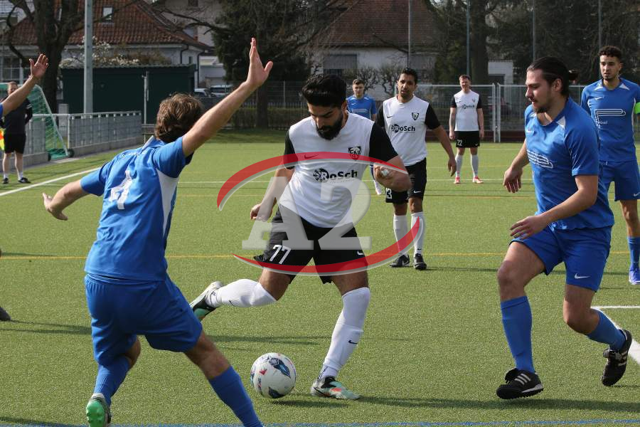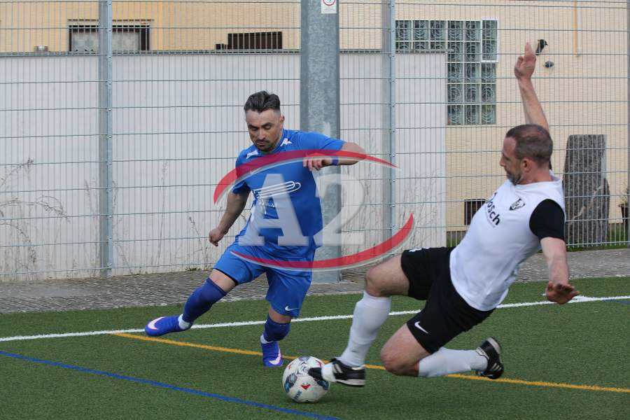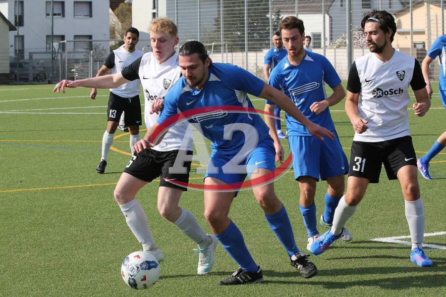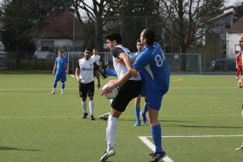 Oskar Wittenberg und Nikolas Floudaras (84, Squadra Azzurra) gegen Fardin Fagirzada (7, FC Neu-Isenburg)