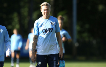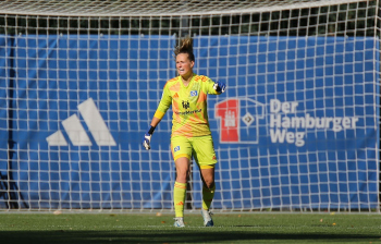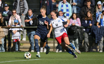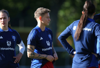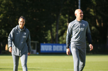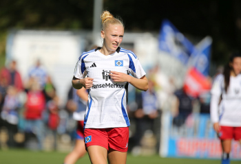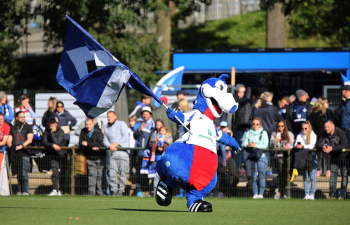 29.09.2024, xcex, GER, Hamburg, Trainingsplatz am Volksparstadion, Frauenfussball, 2. Frauen- Bundesliga, Saison 2024/2025, Spieltag 5, HSV Frauen - VfL Bochum, Dino Herrmann, Maskottchen, Fahne, Flagge, Symbolbild