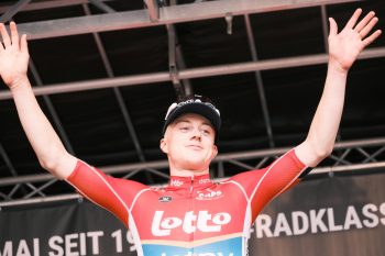 Podium, Sieger, 1. Platz Maxim Van Gils, BEL (Team Lotto DSTNY (LTD) - BEL), 2. Platz Alex Aranburu, ESP (Team Movistar (MOV) - ESP), 3. Platz Riley Sheehan USA (Team Israel Premier Tech (IPT)