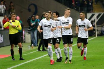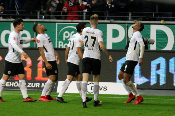 Torjubel nach dem Tor von Rebic, Ante (4, Eintracht Frankfurt), Hasebe, Makoto (20 Eintracht Frankfurt)