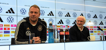 20.03.2023 Frankfurt am Main, DFB-Campus DFB A-Nationalmannschaft der Männer Pressekonferenz DFB-Sportdirektor Rudi Völler, Bundestrainer Hansi Flick DFB-U21-Trainer Antonio Di Salvo ********* Foto: Peter Hartenfelser