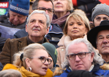 25.01.2020 Kitzbühel 80. Hahnenkamm Rennen 2020 - Ski Alpin Abfahrt Herren Streif auf der Tribüne Schauspielerin Uschi Glas mit Ehemann Dieter Hermann : *** Foto Peter Hartenfelser ********* Foto: Peter Hartenfelser