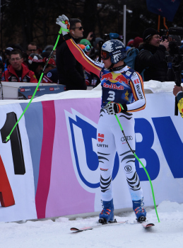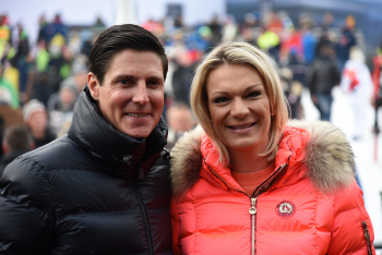 25.01.2020 Kitzbühel 80. Hahnenkamm Rennen 2020 - Ski Alpin Abfahrt Herren Streif Maria Höfl-Riesch mit Eheman Markus Höfl : *** Foto Peter Hartenfelser ********* Foto: Peter Hartenfelser