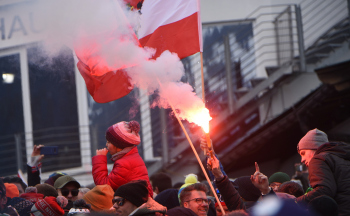 25.01.2020 Kitzbühel 80. Hahnenkamm Rennen 2020 - Ski Alpin Abfahrt Herren Streif die Fans aus Austria feiern mit Bengalos : *** Foto Peter Hartenfelser ********* Foto: Peter Hartenfelser