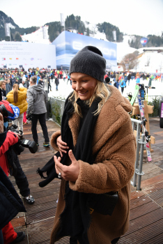 25.01.2020 Kitzbühel 80. Hahnenkamm Rennen 2020 - Ski Alpin Abfahrt Herren Streif Ex-Schwimmstar Franziska van Almsick : *** Foto Peter Hartenfelser ********* Foto: Peter Hartenfelser