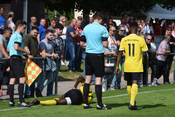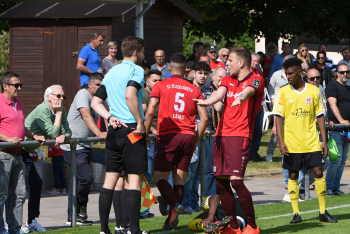 Alban Lekaj (5, Hessen Dreieich) gegen Ahmed Diack (RW Frankfurt) Schiedsrichter David Scheuermann zeigt dafür die rote Karte
