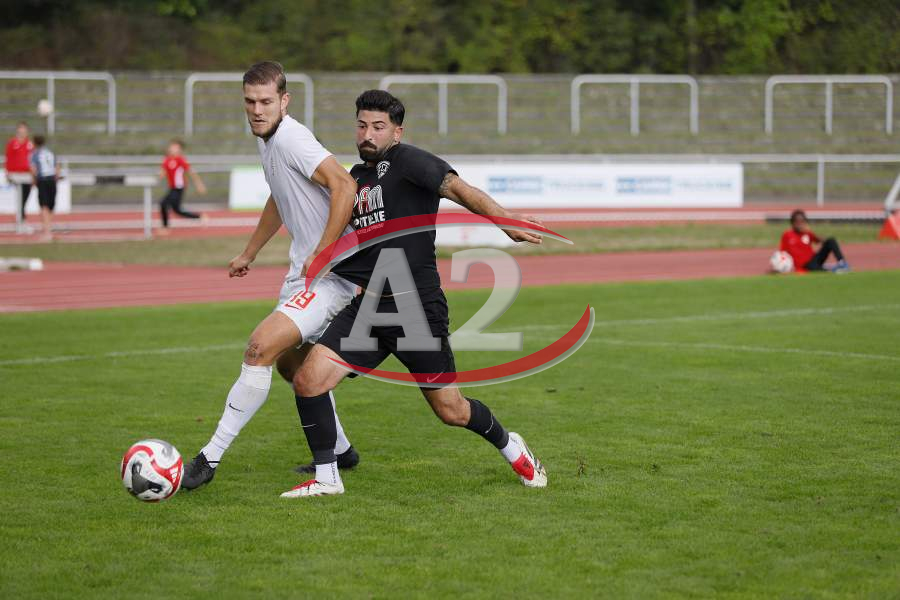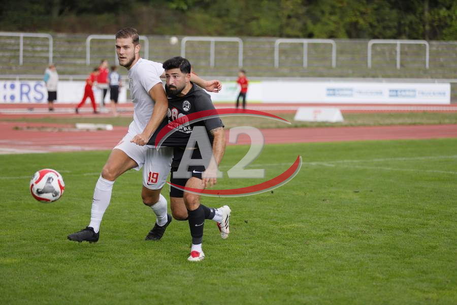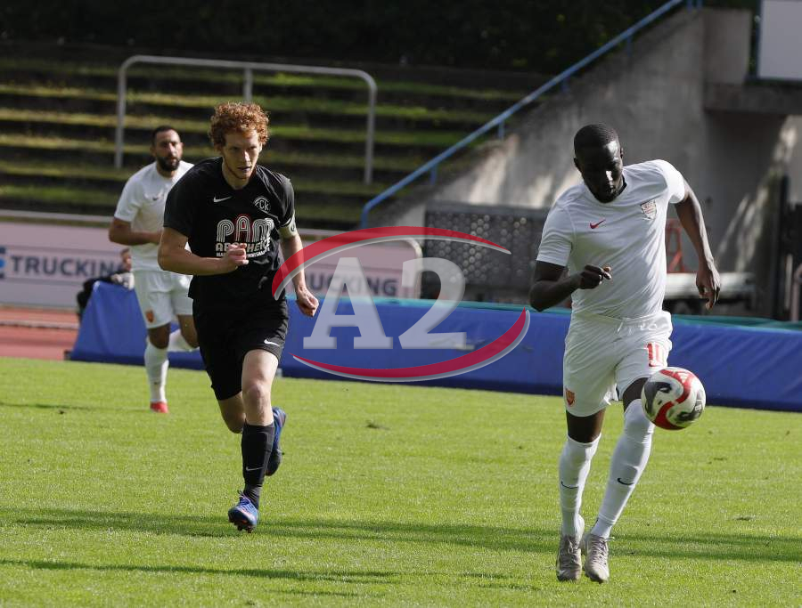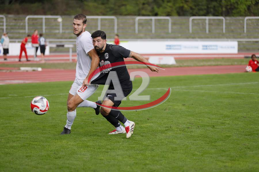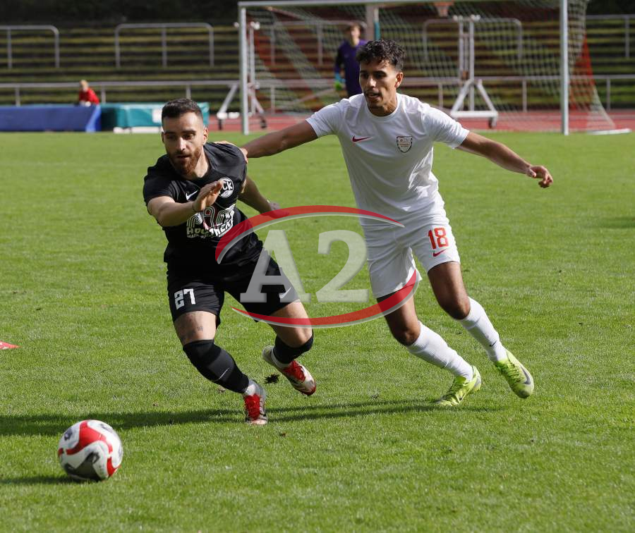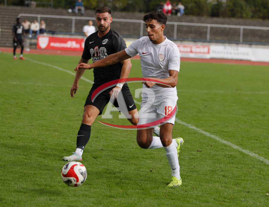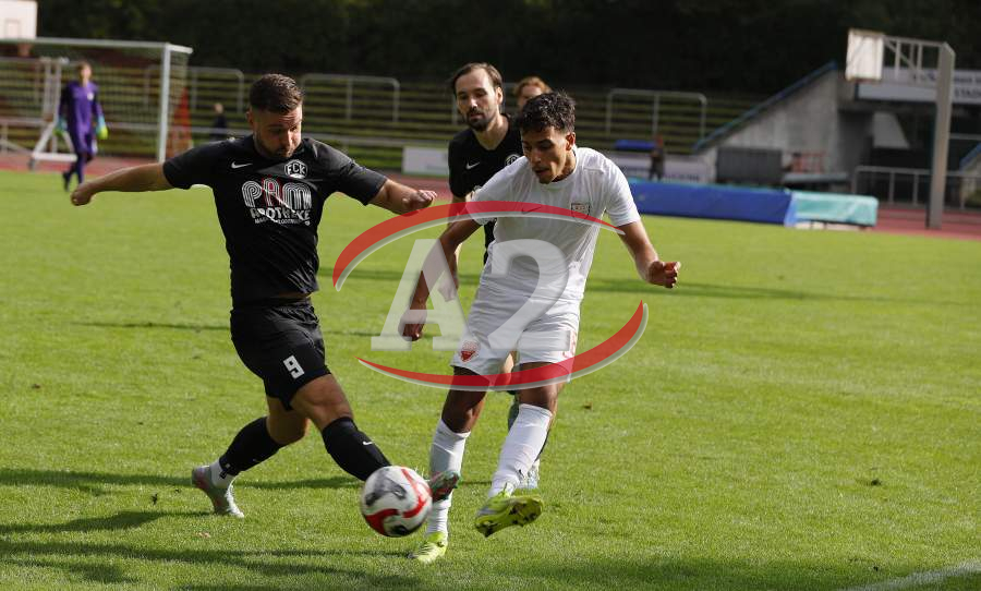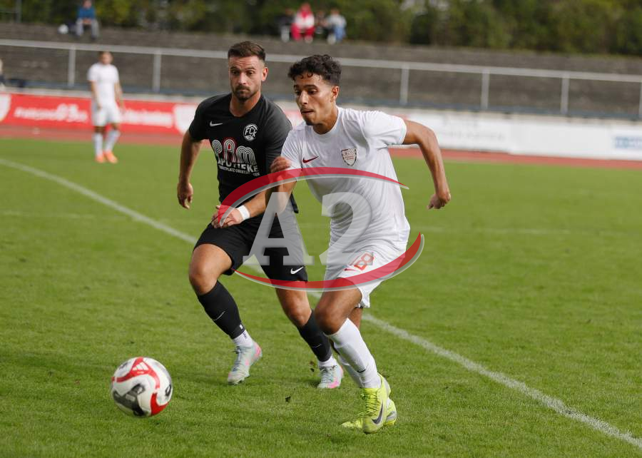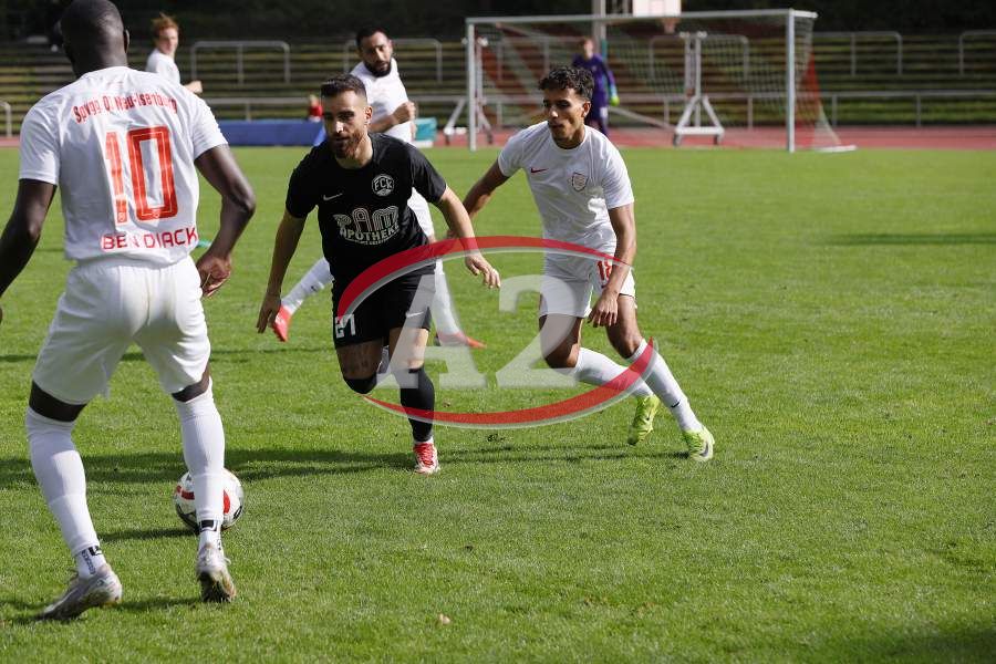 Francesco Calabrese (Obertshausen) gegen Ouassim Abardah (18, Spvgg. 03 Neu-Isenburg) und AHMED BEN BACHIR DIACK (10, Spvgg. 03 Neu-Isenburg)
