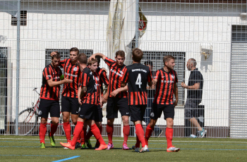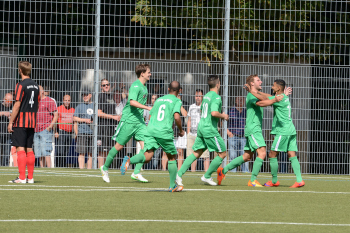 Torjubel bei der Mannschaft von Oberrad nach dem Ausgleich 1:1 u.a. Alexander Haaker, Aljoscha Atzberger Mahmood Shazad (Spvgg.05 Oberrad)