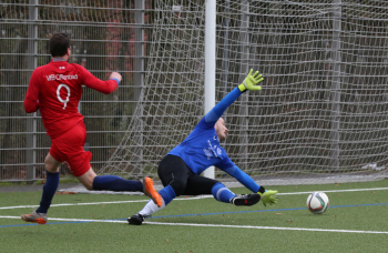 17.03.2019 xmgoodx Neu-ISenburg TSG Neu-Isenburg gegen VfB Offenbach Tor durch Nebojscha Nikolov (TSG) gegen Torwart Marco Zeiger (VfB) ****** Foto: Peter Hartenfelser
