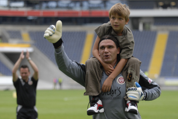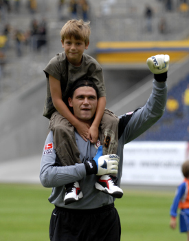 02.09.2007, Wehen Wiesbaden vs Alemannia Aachen, Torwart Adnan Masic jubelt