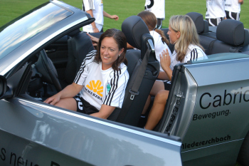 13.08.2007, 1. FFC Frankfurt Saison 2007/2008 - Mannschaftsvorstellung - die FFC-Damen haben viel Spass mit dem neuen BMW