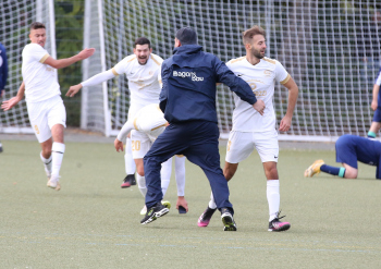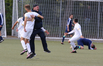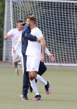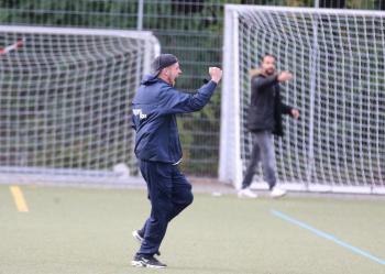 17.10.2021 xmgoodx Heusenstamm, Martinsee Fussball Amateure Saison 2021/2022 SSG Gravenburch gegen Al Amal Dietzenbach Jubel bei Gravenbruch nach dem Ausgleich zum 3:3 u.a. bei Trainer Denny Frank (SSG Gravenbruch) ***** Foto: A2Bildagentur Hartenfelser