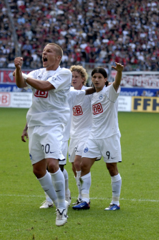 17.08.2008, Eintracht Frankfurt vs Hertha BSC Berlin, Jubel beim Torsch?tzen Patrik Ebert