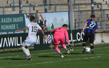 Michael Schupp (VfR Aalen), Torwart Michel Witte (VfR Aalen), Lucas Hermes (27, FSV Frankfurt)