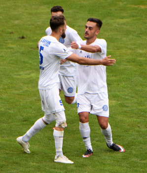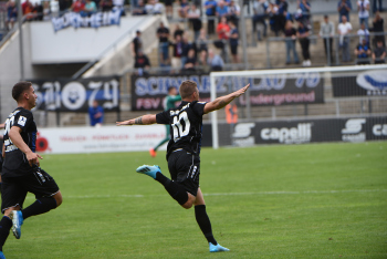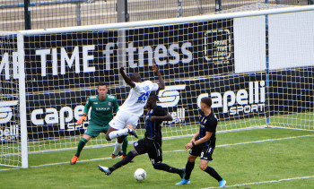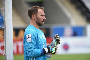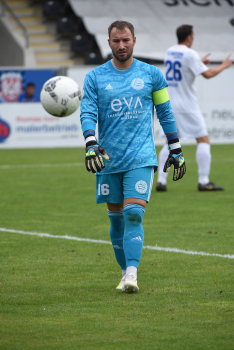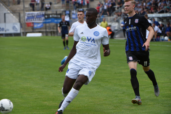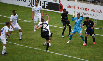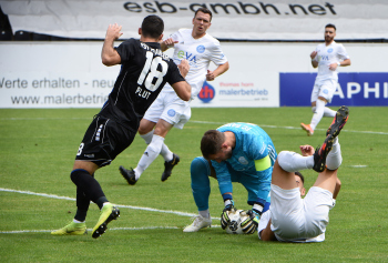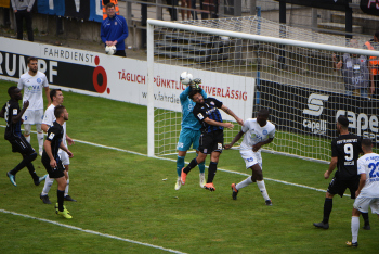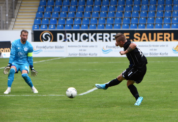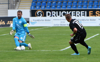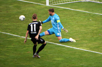 Alieu Sawaneh (FC Bayern Alzenau) gegen Torwart Aulbach, Marco (33, FSV Frankfurt)