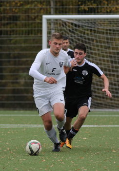 04.11.2018, xmgoodx KOL Saison 2018/2019 TSG Neu-Isenburg II gegen FC Neu-Isenburg TSG Neu-Isenburg (Nr.22) Marvin Rupp - FC Neu-Isenburg (Nr.7) Michael Meyer ****** Foto: Peter Hartenfelser