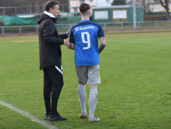 14.11.2021 Offenbach am Main, Gruppenliga GL Offenbach Saison 2021/2022 SG Rosenhöhe – VfB Offenbach Trainer Sebastian Schneider mit Robin Weber (Rosenhöhe) ***** Foto: A2Bildagentur Hartenfelser