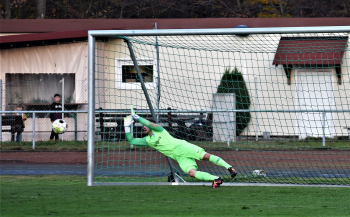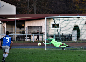 14.11.2021 Offenbach am Main, Gruppenliga GL Offenbach Saison 2021/2022 SG Rosenhöhe – VfB Offenbach Nicolas Manuel Läpple (Rosenhöhe) ahnt die Ecke und wehrt den Elfmeter ab ***** Foto: A2Bildagentur Hartenfelser