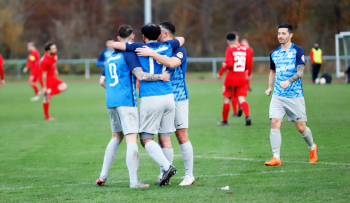 14.11.2021 Offenbach am Main, Gruppenliga GL Offenbach Saison 2021/2022 SG Rosenhöhe – VfB Offenbach Torjubel bei der Rosenhöhe u.a. Robin Weber ***** Foto: A2Bildagentur Hartenfelser