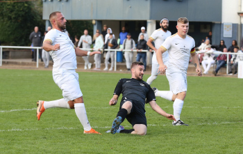 DENIS OSMANAGIC (Sparta) gegen Marvin Heublein (Bieber) links FRANCESCO PETROVIC (Bieber)