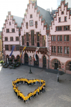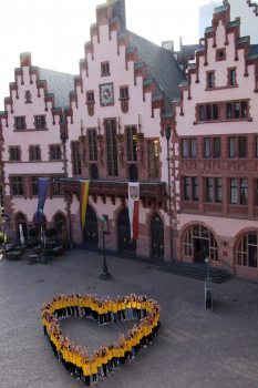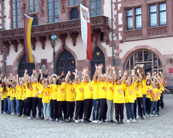 20.09..2010, Das Herz des Frauenfu?balls bildeten Fussballm?dchen aus 9 Frankfurter Vereinen u.a. FFC Frankfurt, Blaugelb Frankfurt vor dem R?mer