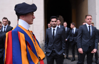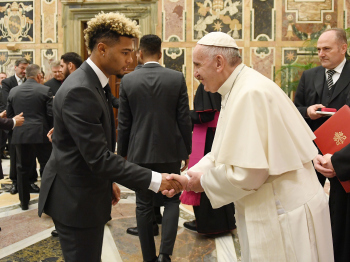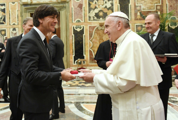 Football / Soccer: The german National football men´s team visits Pope Francis during a private audience in the Palace of the Vatican, Vatican City, Vatican, November 14, 2016POOLPHOTO: