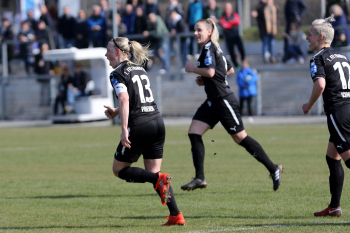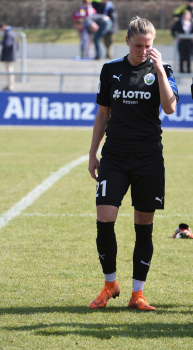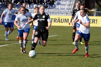 Prießen, Marith (13, FFC Frankfurt) gegen Catherune Joan Bott und rechts Amelia Pietrangelo (Jena)