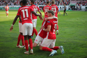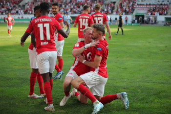 Jubel bei Ouassim Karada (24, OFC) und Boubacar Barry (11, OFC)