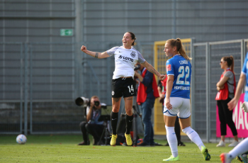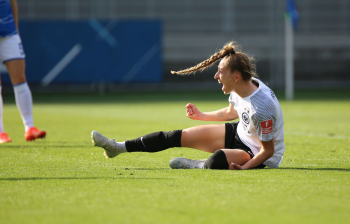 FLYERALARM Frauen-Bundesliga Saison 2022/2023, Spieltag 6, SGE, TSG 1899 Hoffenheim - Eintracht Frankfurt Frauen, Torjubel Eintracht Frankfurt Frauen, Jubel, Freude, Emotionen, goal celebration, Geraldine Reuteler (SGE)