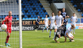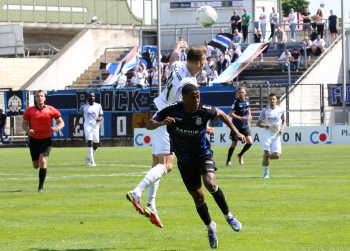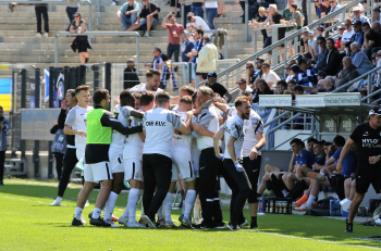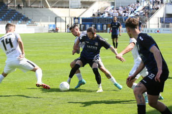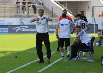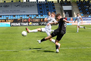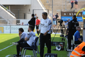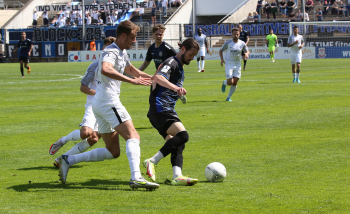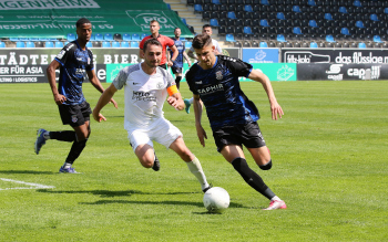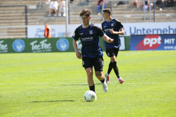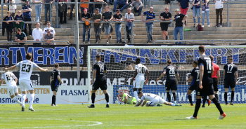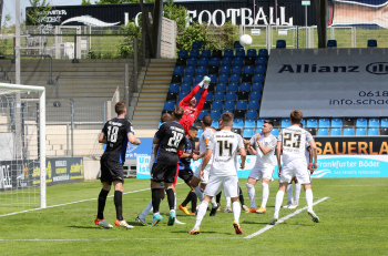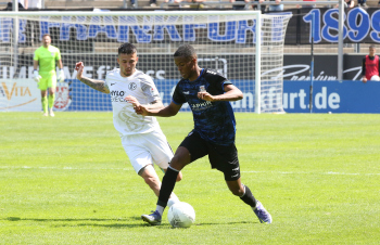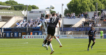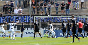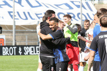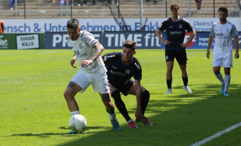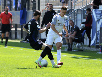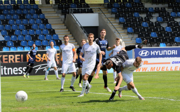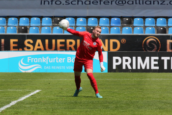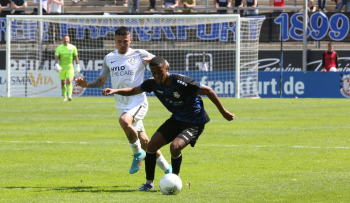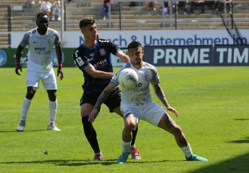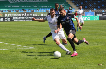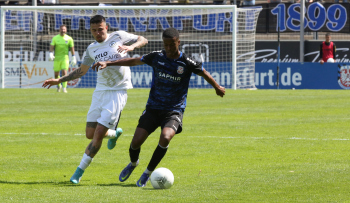 Marcel Heller (10, FSV Frankfurt) gegen ROBIN FELLHAUER (14, Elversberg) und ISRAEL SUERO FERNANDEZ (22, Elversberg)