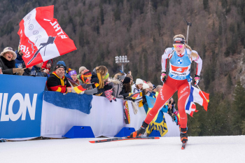 Germany - JANUARY 14: Dunja Zdouc (AUT) at the Biathlon, IBU World Cup: Ruhpolding, Women 4x6km Realy, at the Chiemgau Arena on January 14, 2023 in Ruhpolding, Germany.