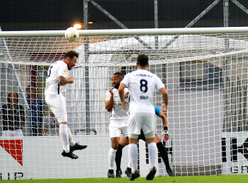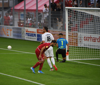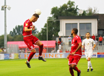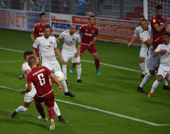 09.08.2019, xxx, Dreieich, Fussball, Hahn Air Sportpark; Lotto Hessenliga, Saison 2019/2020, SC Hessen Dreieich gegen 1. Hanauer FC; Kopfball von Domagoj Filipovic (SC Hessen Dreieich);