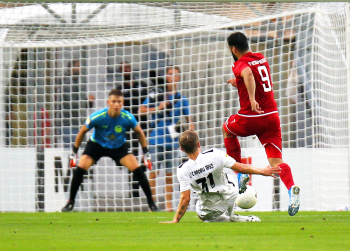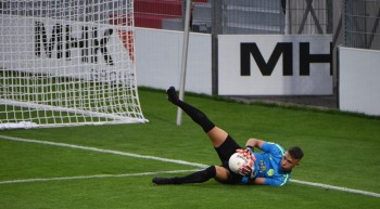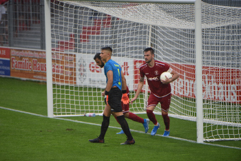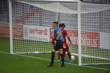 09.08.2019 hn Air Sportpark Dreieich Hessenliga Saison 2019/2020 SC Hessen Dreieich gegen FC Hanau 93 Torwart Armend Brao (Hanau) geschlagen *** Foto:Peter Hartenfelser ****** Foto: Peter Hartenfelser